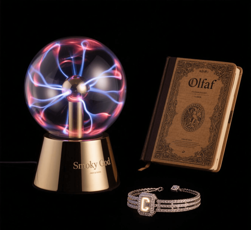 - Not T-shirts. High-end replicas: Olaf’s journal ($250), Smoky God plasma orb lamps ($500), custom light-code jewelry based on buyer’s bio-data ($1,000+).