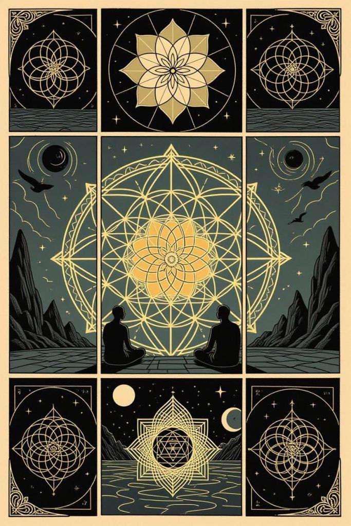 • RESULT: The viewer’s subconscious reads the geometric language: A threshold (Vesica) has been crossed. A journey (Fibonacci) inward is occurring. Harmony (Phi) has been achieved. The audience doesn’t just see the awakening; they feel it in their own energy field.
