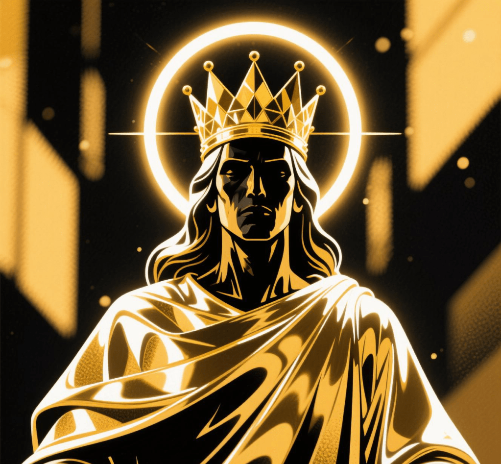 Example: A flowing violet gown with subtle geometric patterns for a sovereign leader.