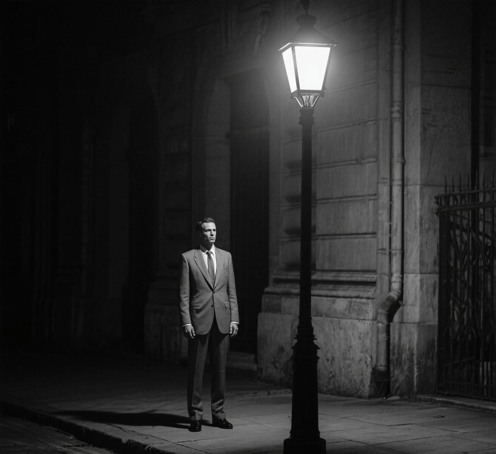 - After: He removes his jacket. Underneath, he wears a deep blue waistcoat embroidered with constellations only visible when he moves into the light.