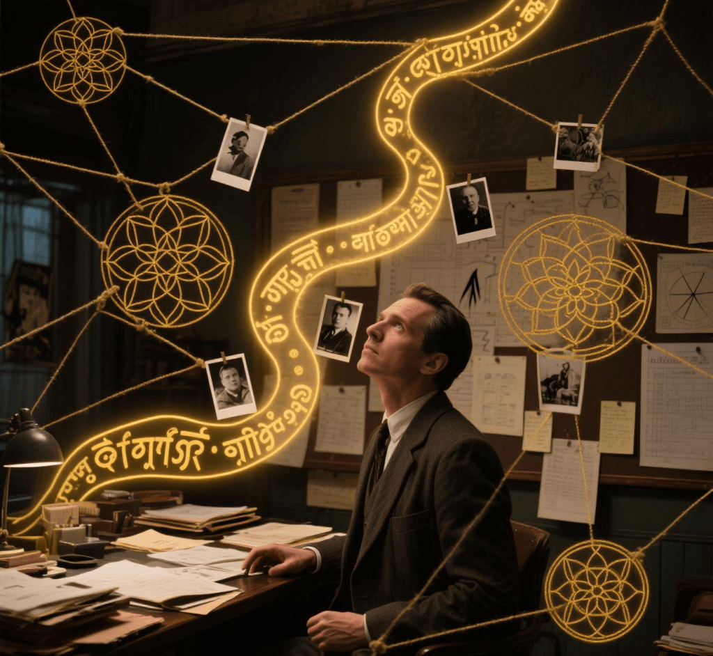 Technique: When a character “sees the code” of the matrix, it shouldn’t be sterile, green binary digits. It should be a flowing, luminous river of golden Sanskrit, geometric shapes, and musical notes the primal language of creation. This data should feel organic, intelligent, and alive.