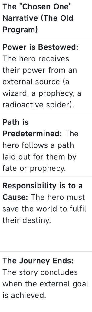 For too long, our stories have been obsessed with destiny. The “Chosen One” born under a prophesied star. The hero who discovers their secret lineage. The victim of circumstance who is saved by external forces. These narratives are not harmless entertainment; they are programs. They condition us to believe that our lives are predetermined, that our power lies outside of ourselves, and that we must wait for salvation.