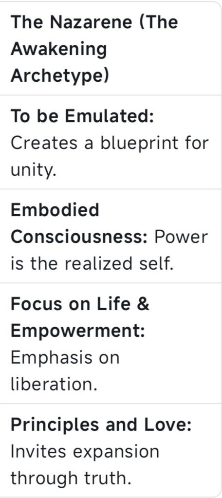 The Nazarene is the most powerful archetype in Awakening Cinema because he is the proof of concept. He is living evidence that a human being can fully incarnate the frequency of source energy, Unconditional Love and Unity Consciousness, and in doing so, become a co-creator of reality.