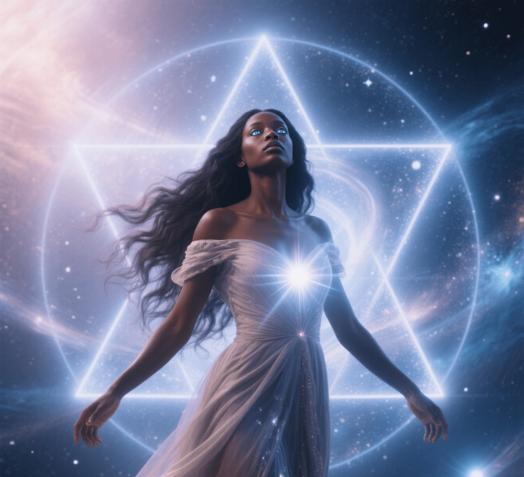 The Function of Cosmic Mirror: The Goddess’s ultimate purpose is to be a perfect mirror for all other beings to see their own divine nature reflected back at them. In her presence, the Victim sees their resilience, the Warrior sees their compassion, and the Sovereign sees their origin. She exists to remind everyone that they, too, are God.